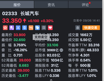 我们选择股票:长城汽车作为研究对象。 港股代码:601633.SH,A股代码:02333.HK。