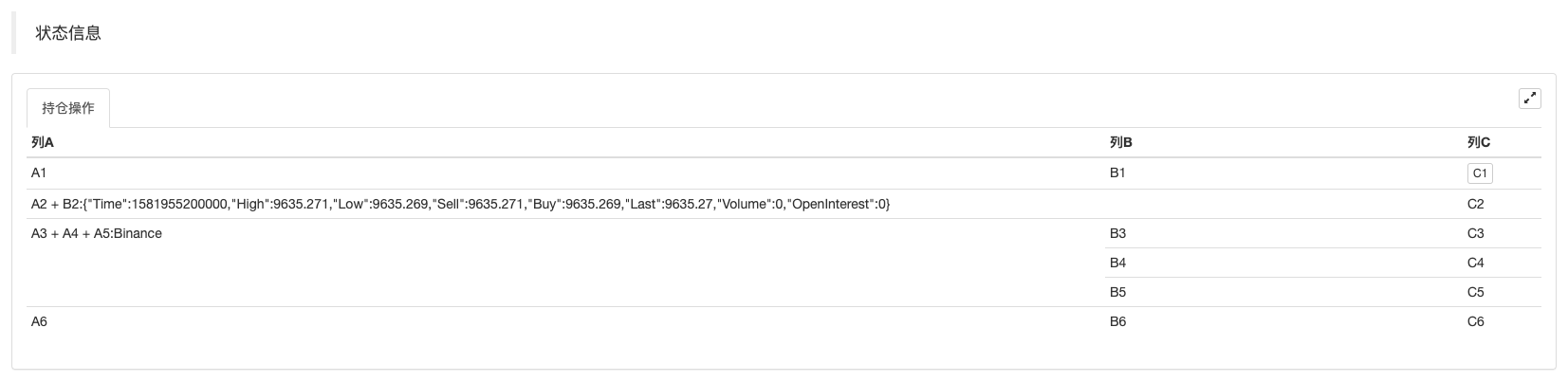LogStatus('`' + JSON.stringify([table1, table2]) + '`')